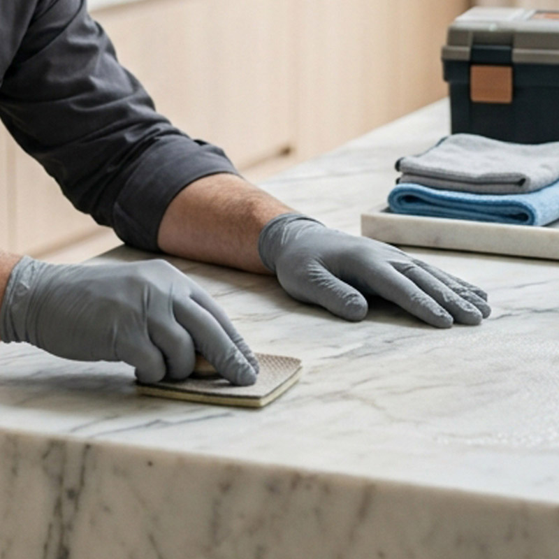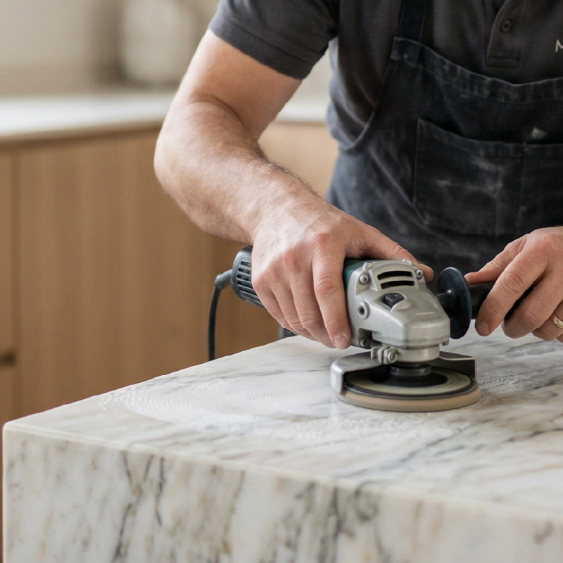 Atuamos na restauração, correção e acabamento de pedras naturais em obras de alto padrão, com foco em precisão, organização e resultado final.